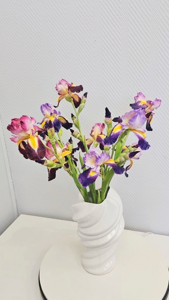 Ирисы-бородачи могут быть выполнена в двух вариантах: невысокие с одним цветком -- около 35-40 см и высокие многоцветковые - высота более 50 см. Цена зависит от варианта исполнения.